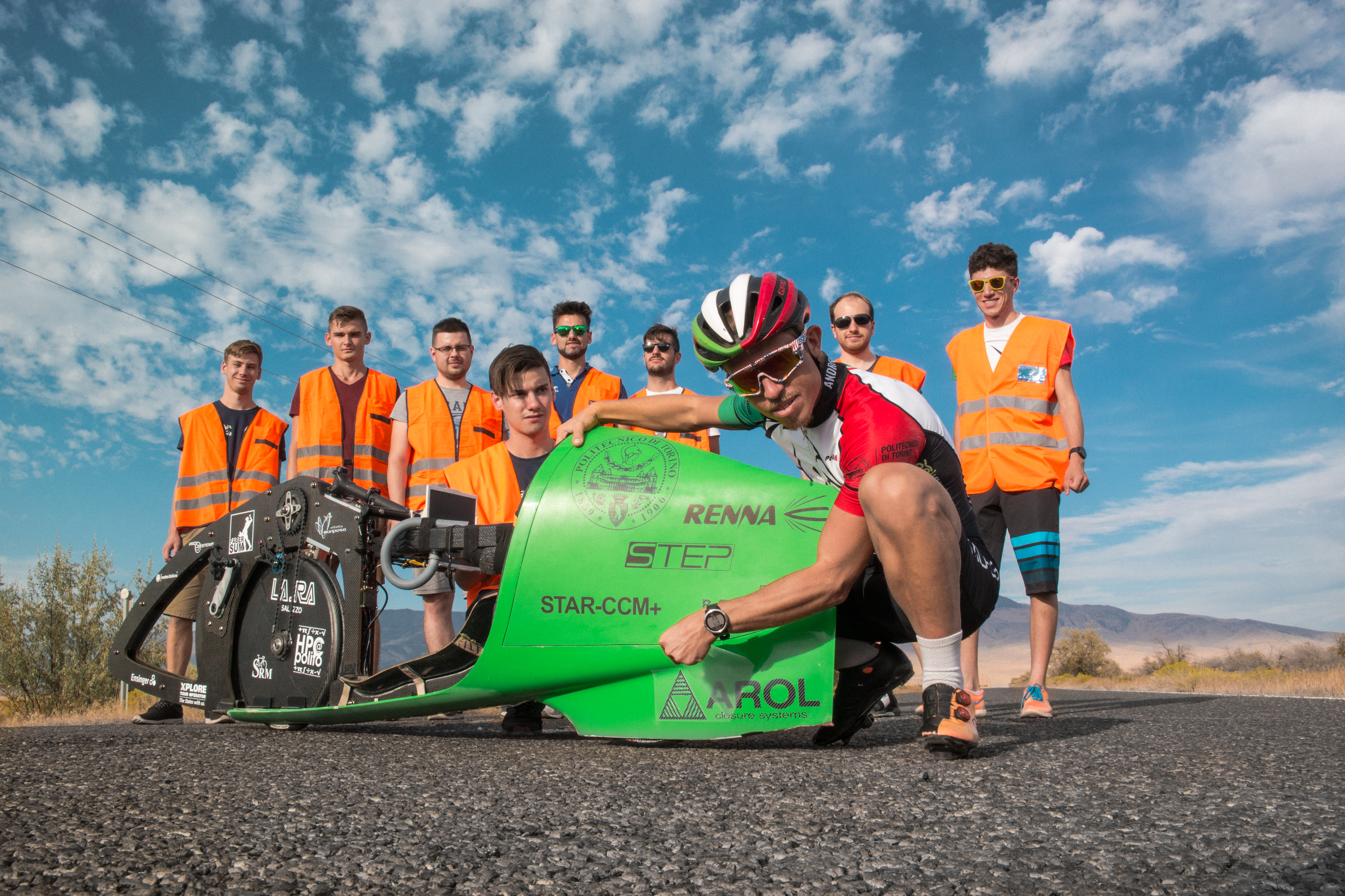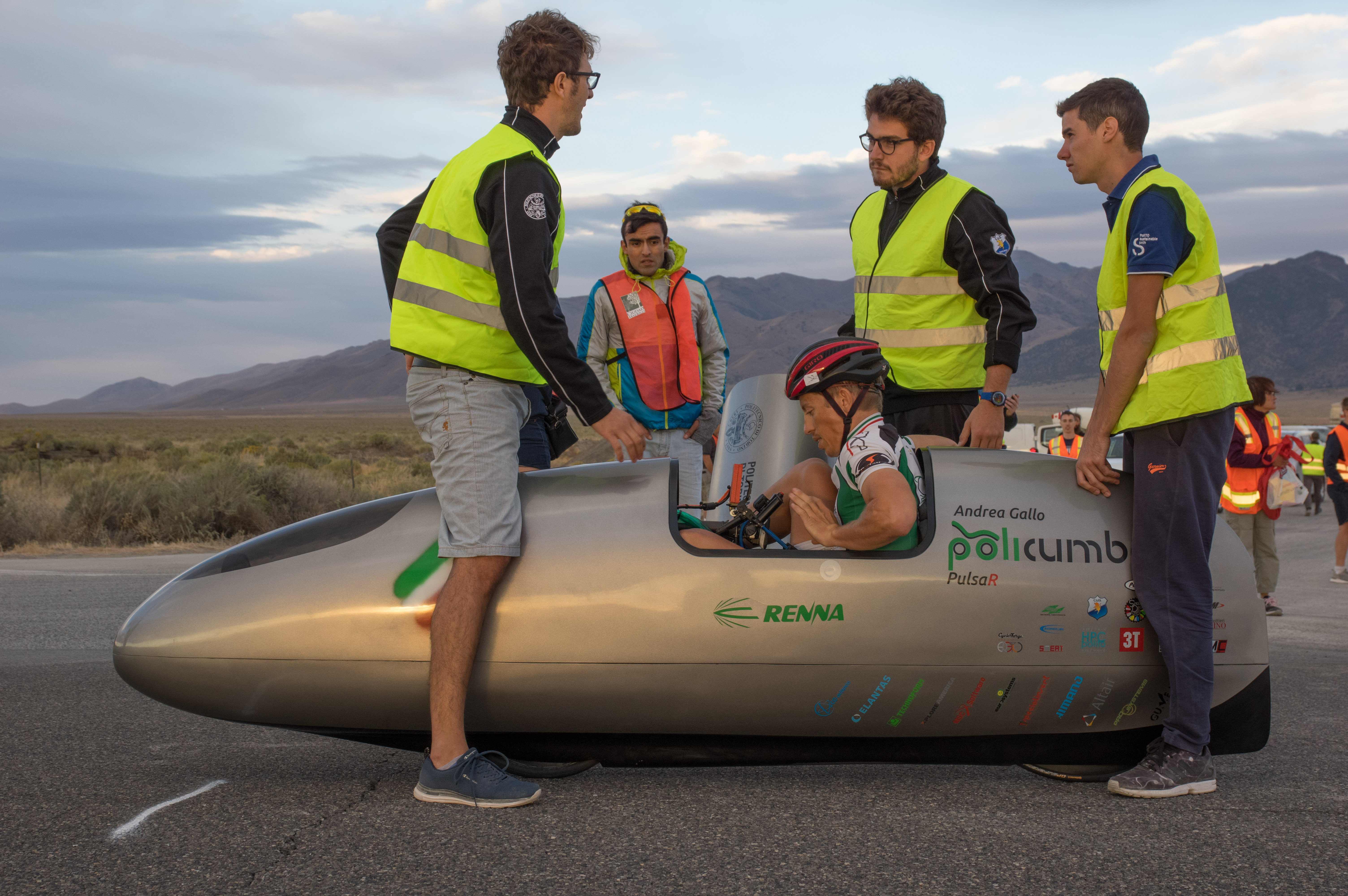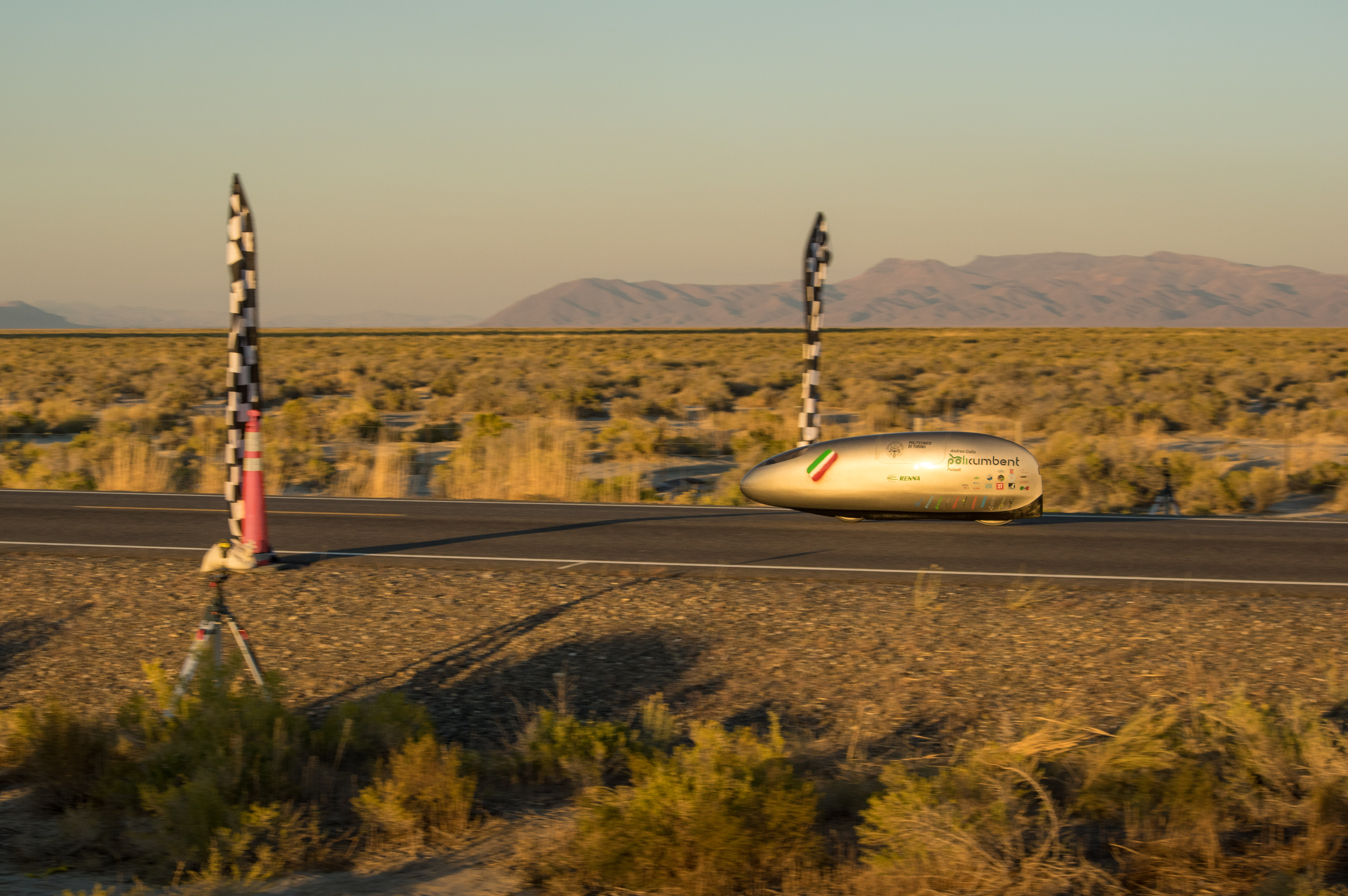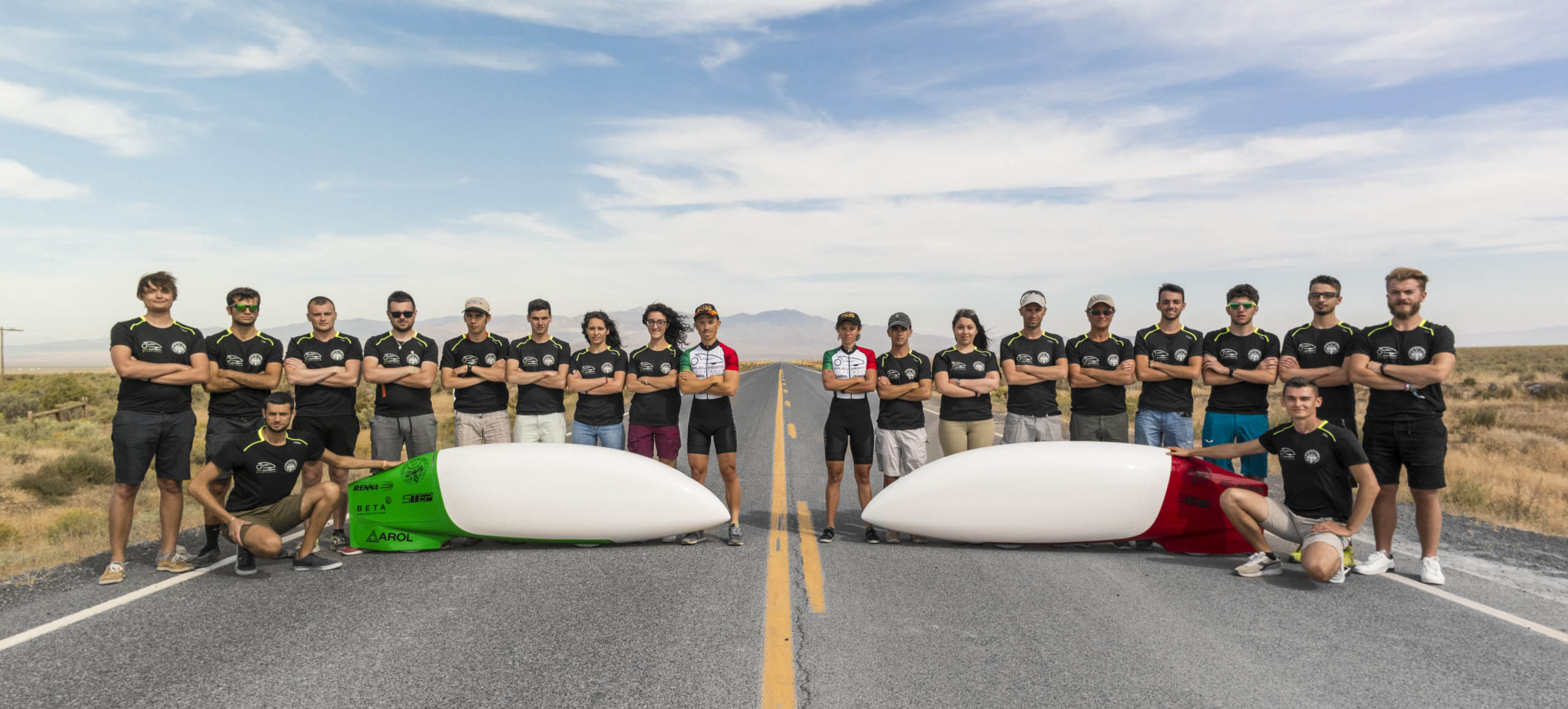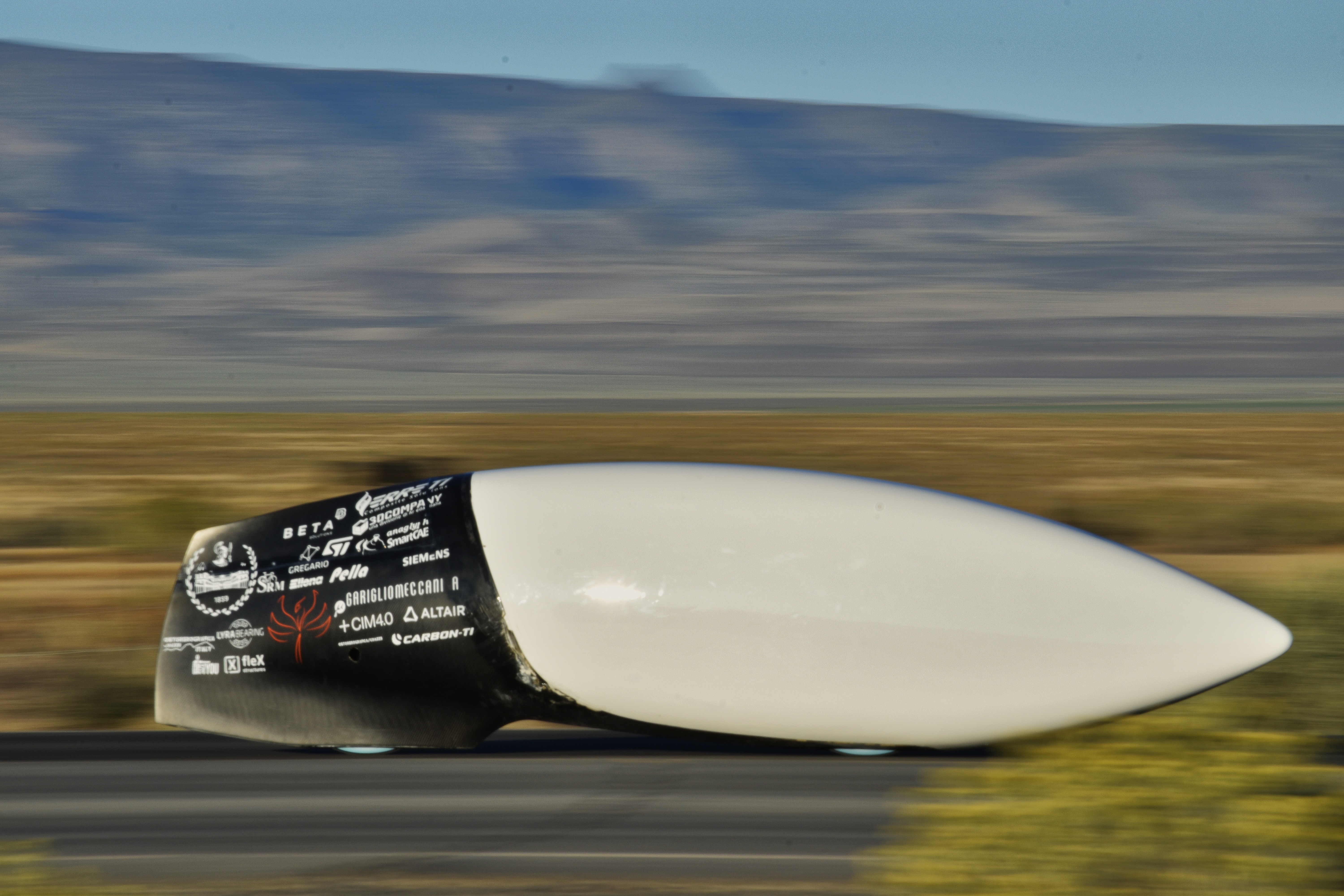 Every year we participate in the WHPSC (World Human Powered Speed Challenge), a competition carried out in Battle Mountain, Nevada (U.S.A), since 2000. The event hosts student and private teams coming from all over the world that challenge themselves to reach record velocities thanks only to human power: no battery, solar cell or motor support is allowed.