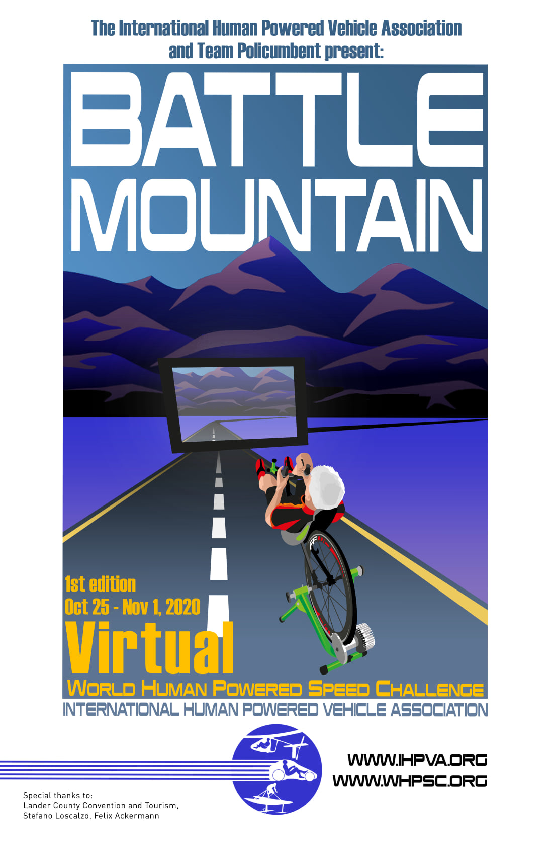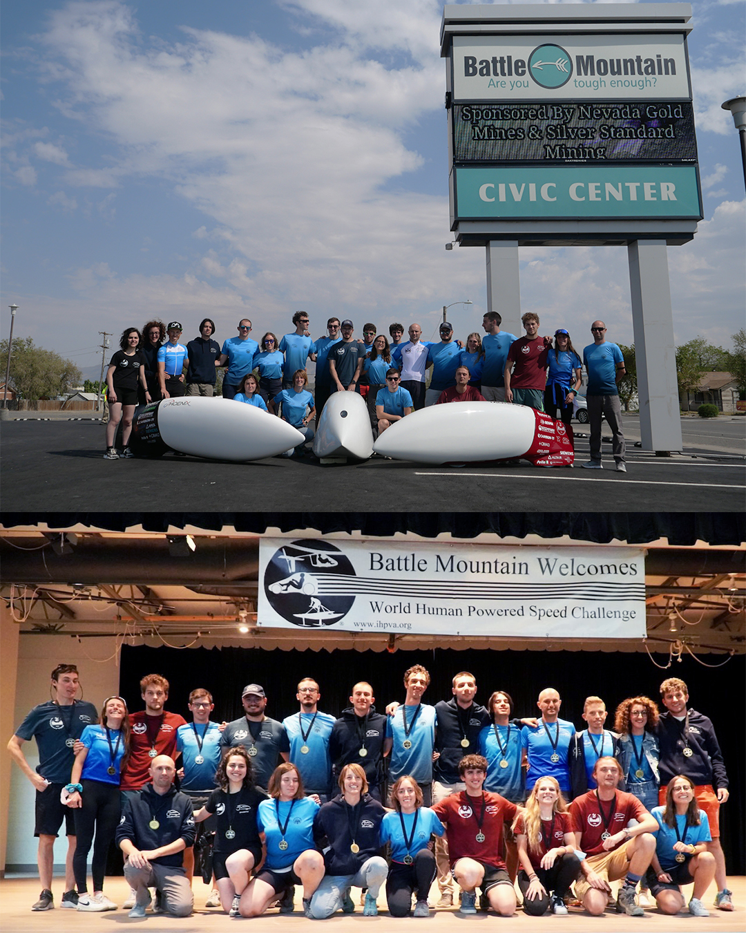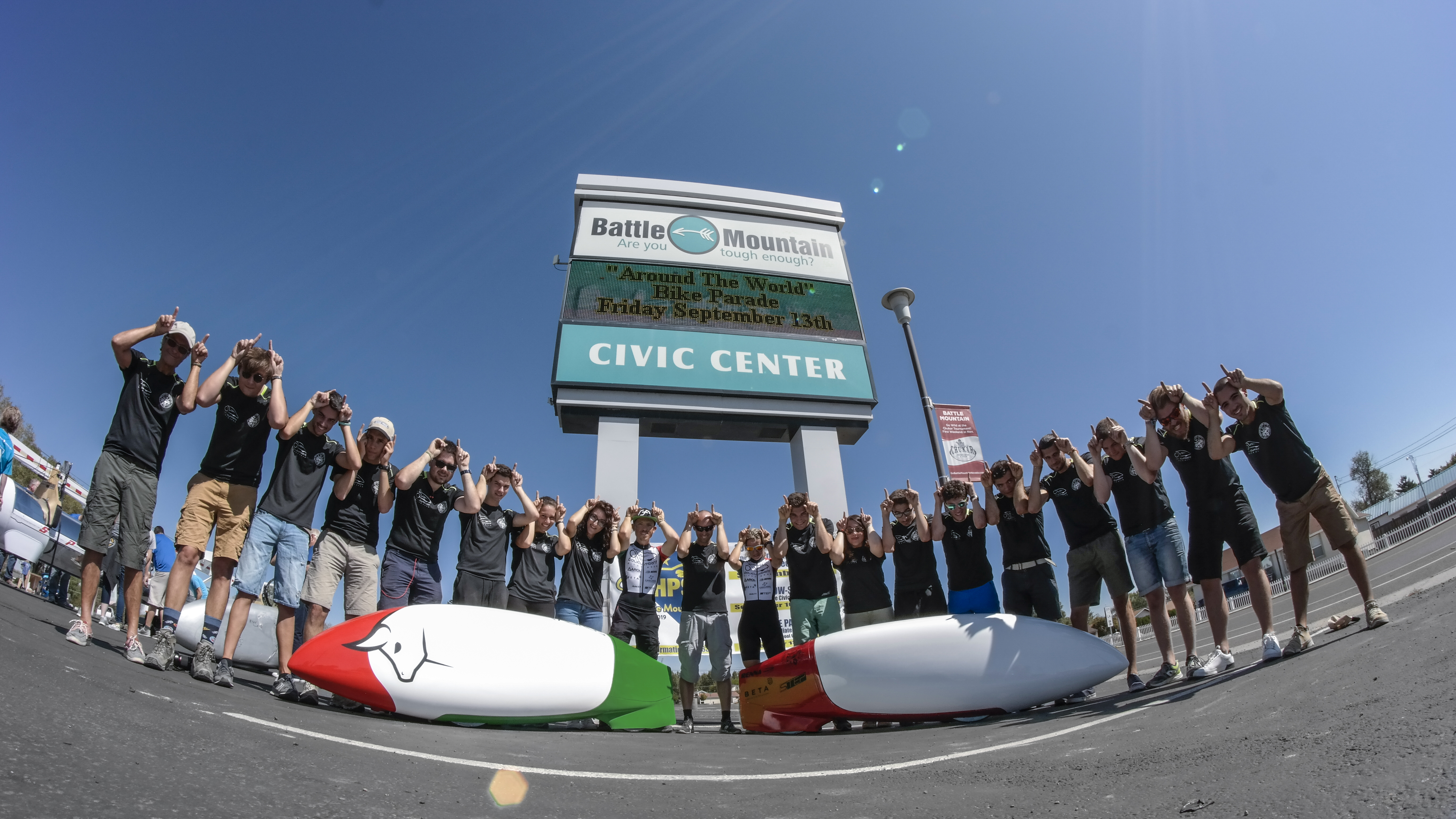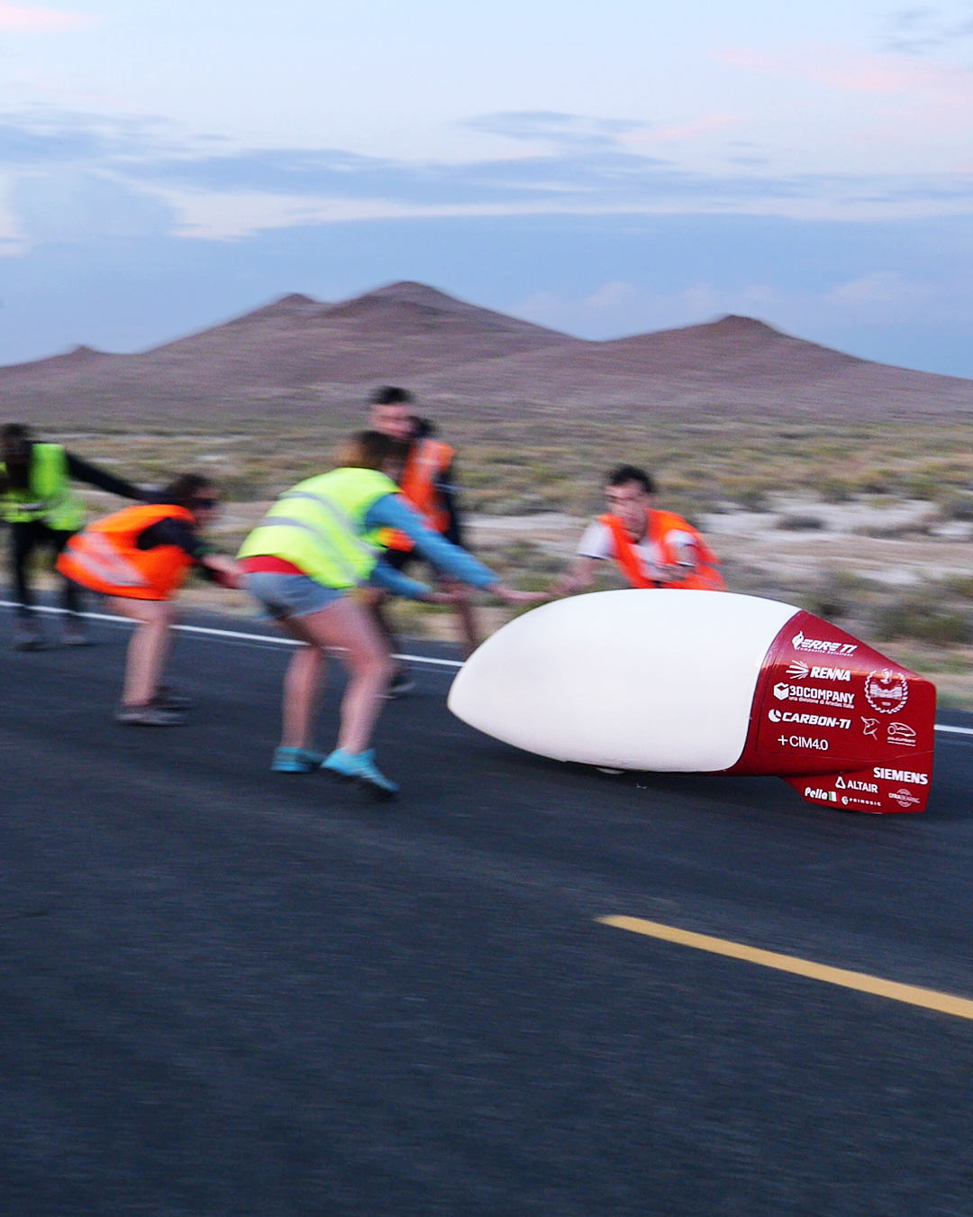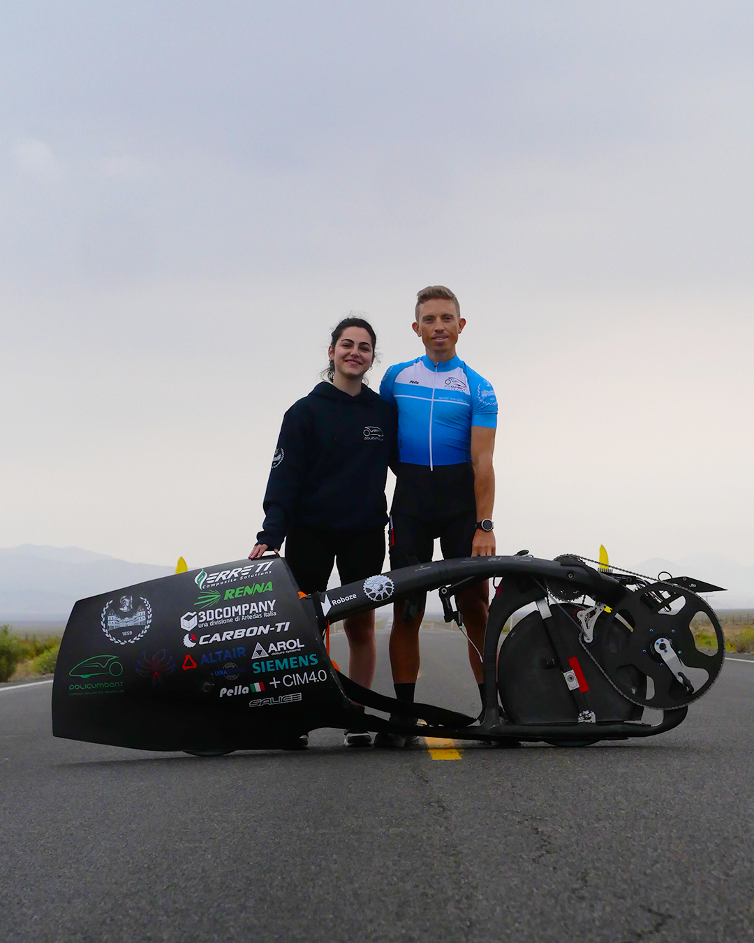 Every year we participate in the WHPSC (World Human Powered Speed Challenge), a competition carried out in Battle Mountain, Nevada (U.S.A), since 2000. The event hosts student and private teams coming from all over the world that challenge themselves to reach record velocities thanks only to human power: no battery, solar cell or motor support is allowed.