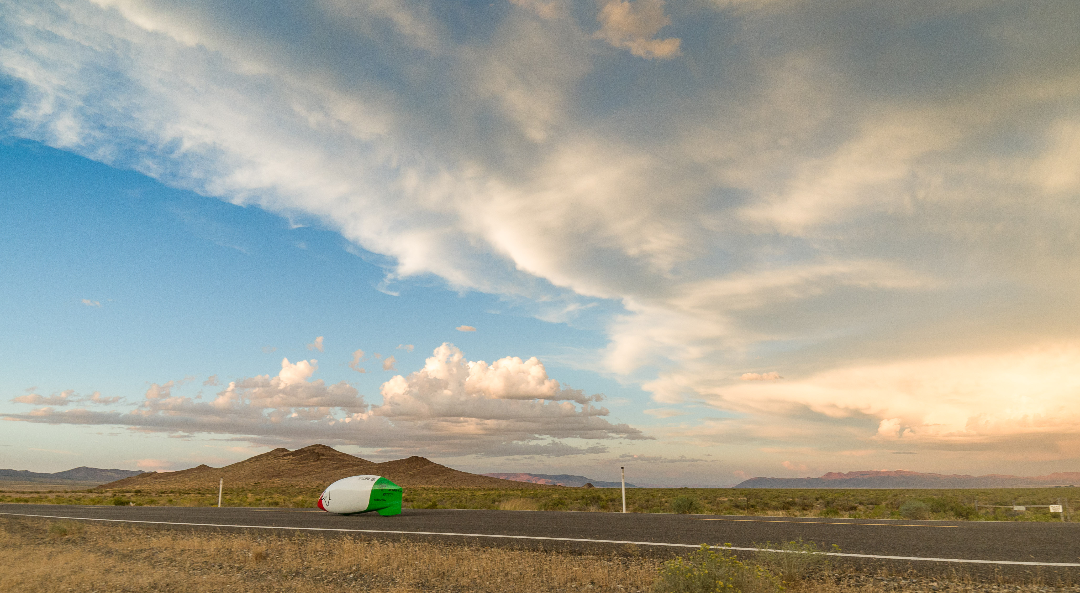 This race against all limits is made possible especially by the characteristics of the little American town: Battle Mountain shows one of the straightest and smoothest roads of the planet. At 1408 above s.l., a 5 miles paved road allows the riders to accelerate as much as possible before the 200meters-long trap in which their velocity is recorded.