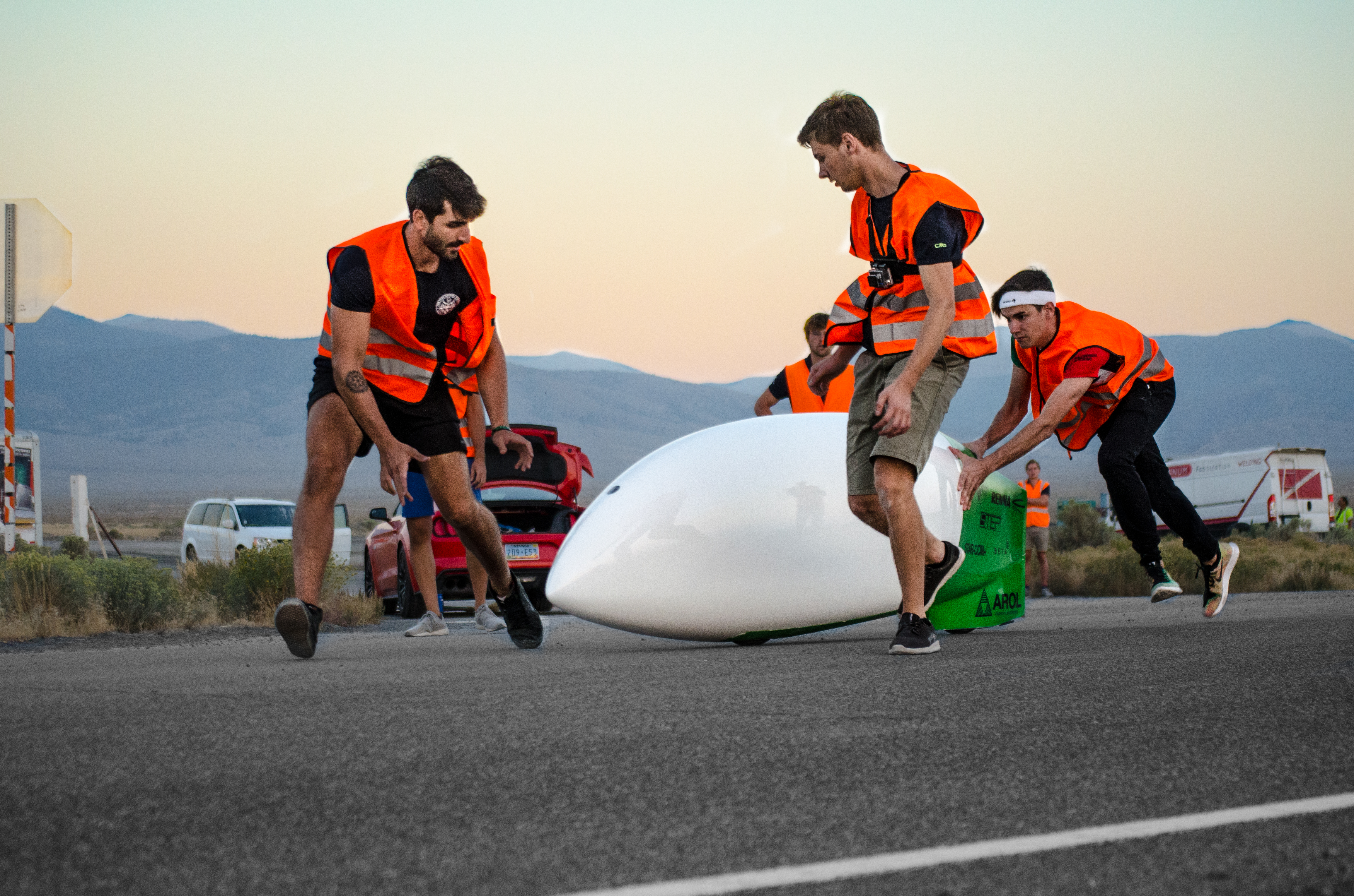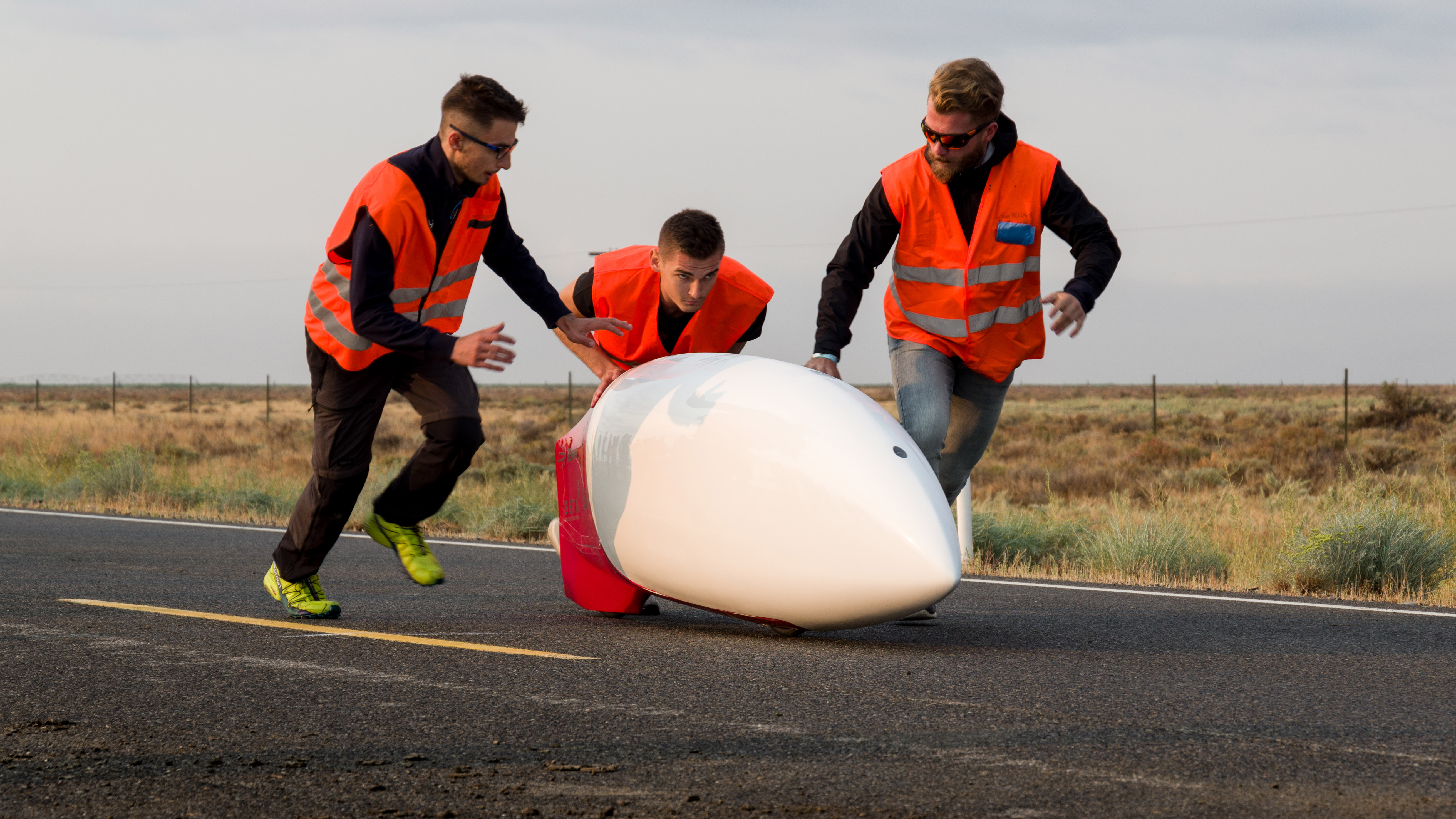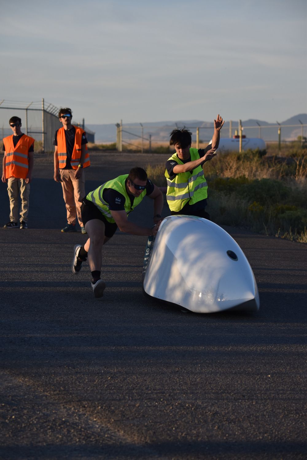 The prototypes are brought to the start, where every team helps his riders to take off. The prototype can be pushed from a single person for not more than 15 meters and this is a key phase to avoid a rollover.